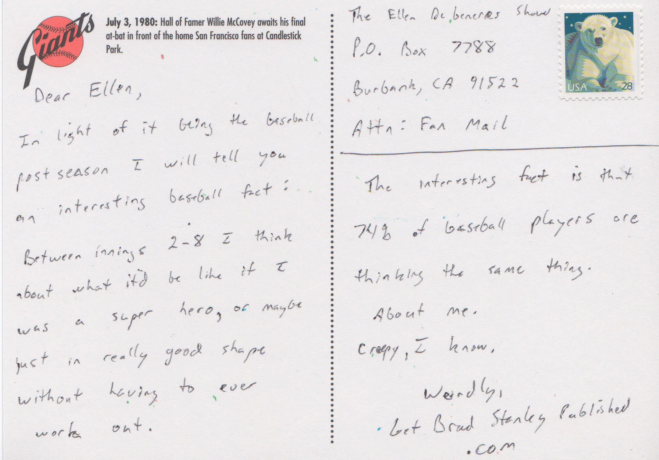 As an FYI, the postcard is from when I went to a Giants game – it was a free giveaway!