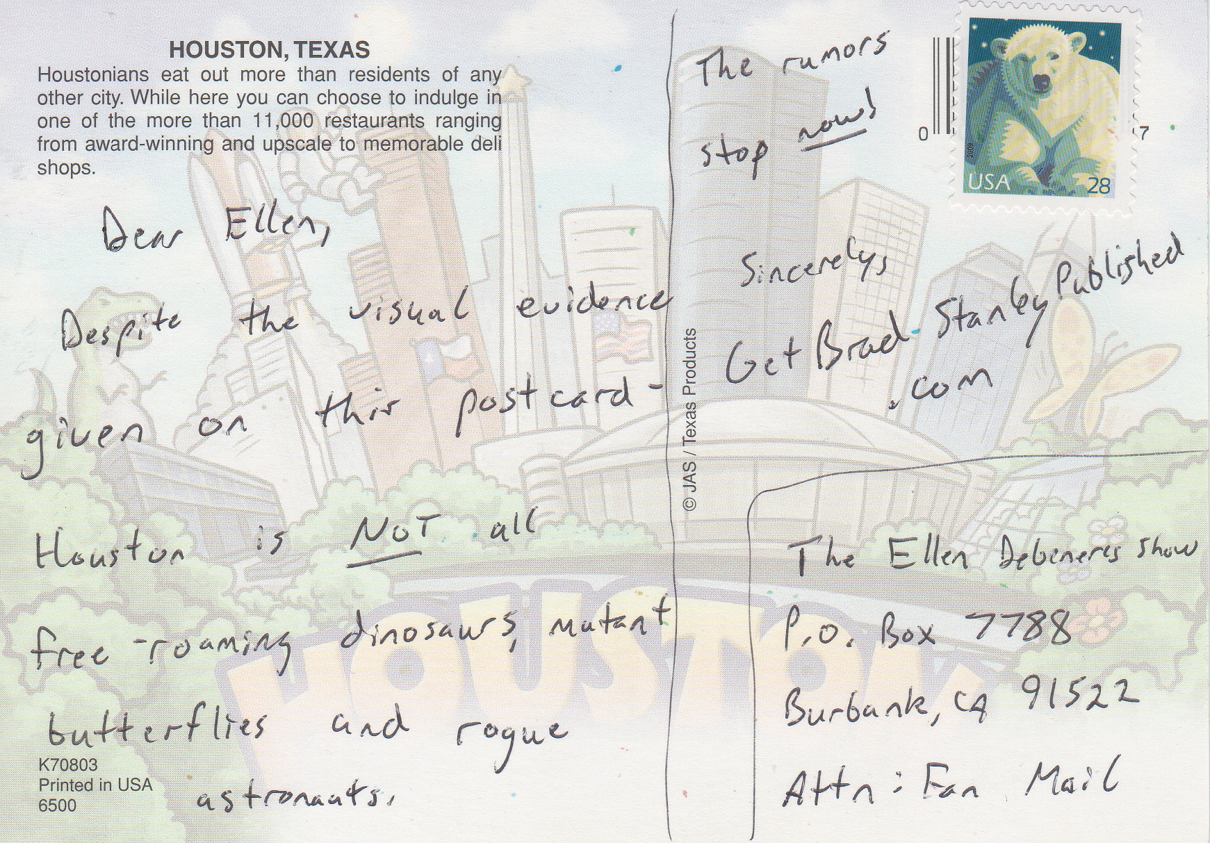 Despite the visual evidence on this postcard – Houston is NOT all free-roaming dinosaurs, mutant butterflies and rogue astronauts.