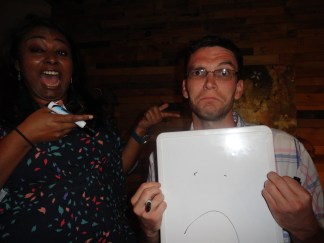 Which was a brilliant response. After that I laughed, said yes of course I’m biased, and agreed to be a judge. This picture was taken after the show, which depicts the MC and I’s relationship I think.