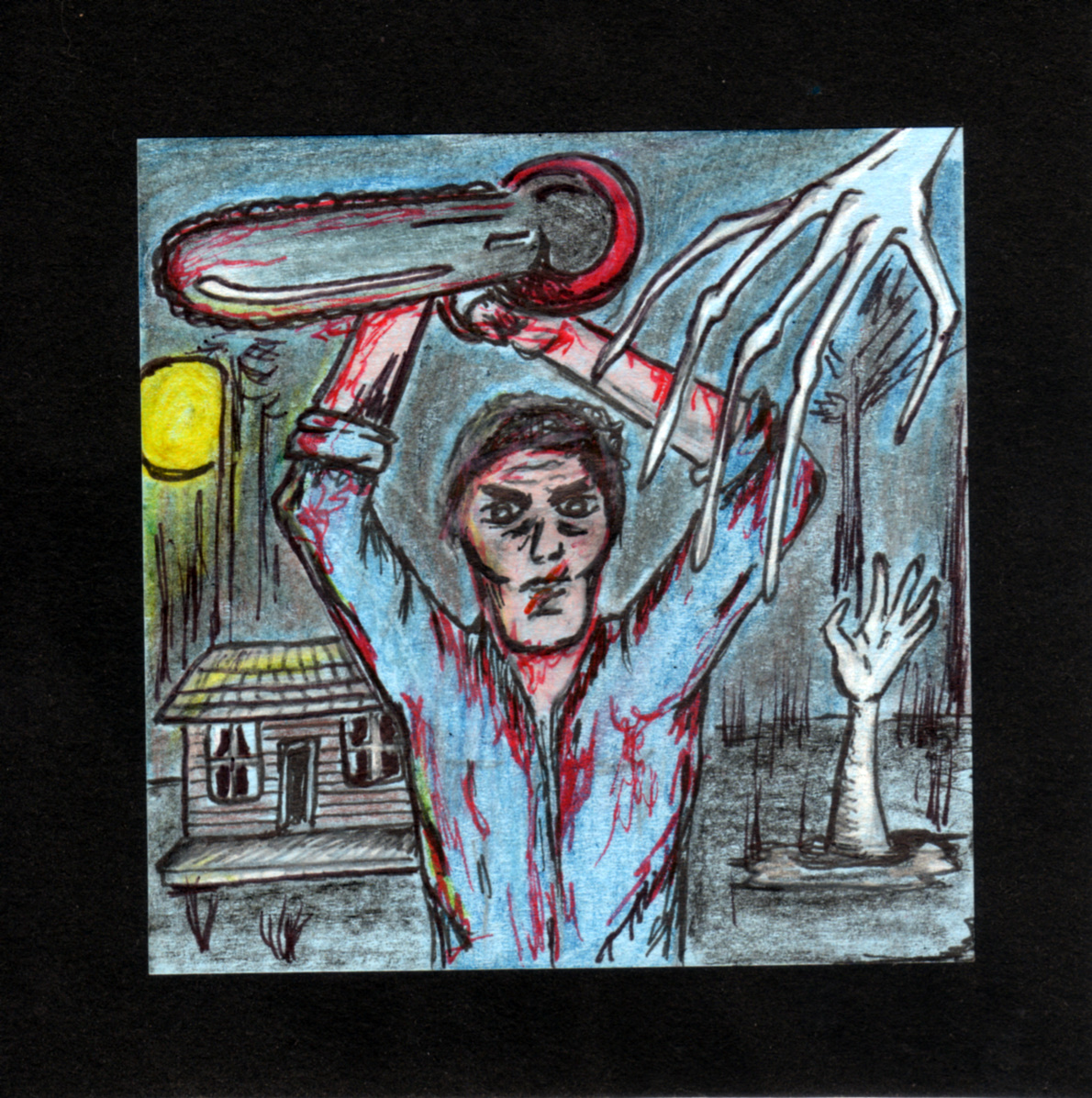 A number of months ago I went to a cool little art showing where all of the art was done on post-it notes. I think the rules were that you could do anything on the post-it, although it may have been limited to drawing on them. I bought two. One I gave as a gift, and the other is Ash, from Army of Darkness.