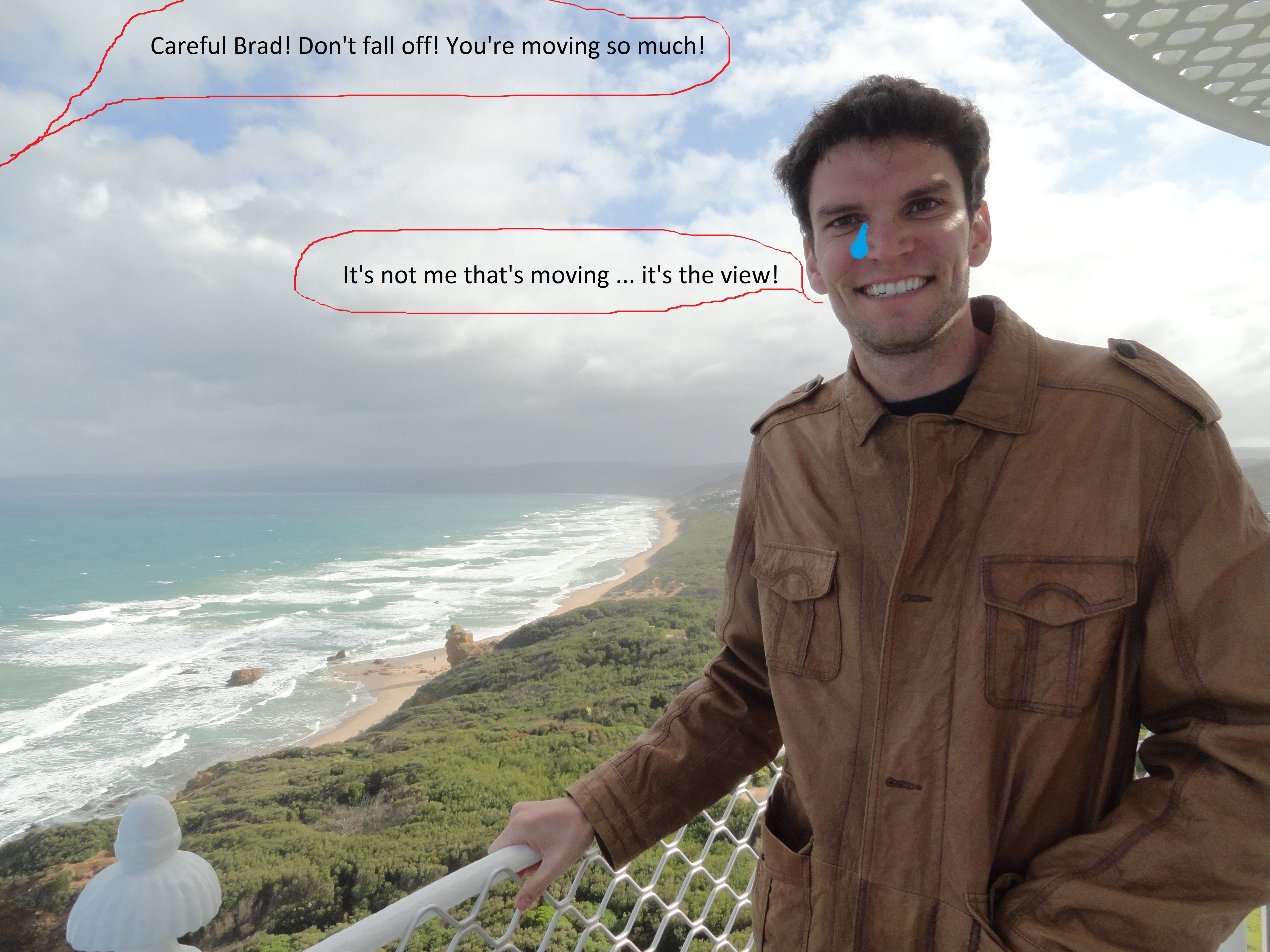It’s windy at the top of a light house, about 100 feet up. And wind makes my eyes water pretty quickly (if I sit at the front of a roller coaster, I come off the ride looking like I have just experienced an emotional breakthrough).