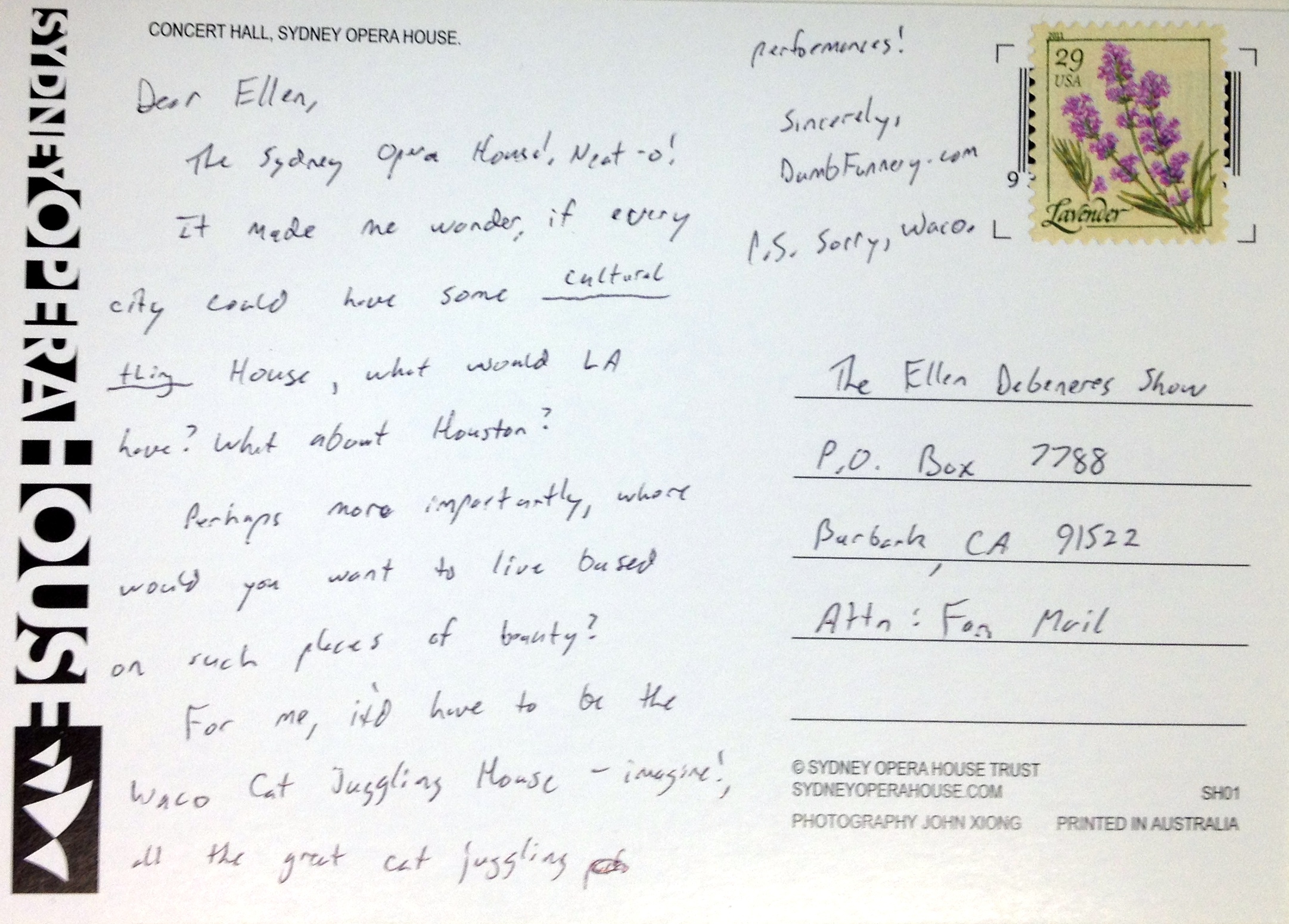 For me, it’d have to be the Waco Cat Juggling House – imagine!, all the great cat juggling performances!