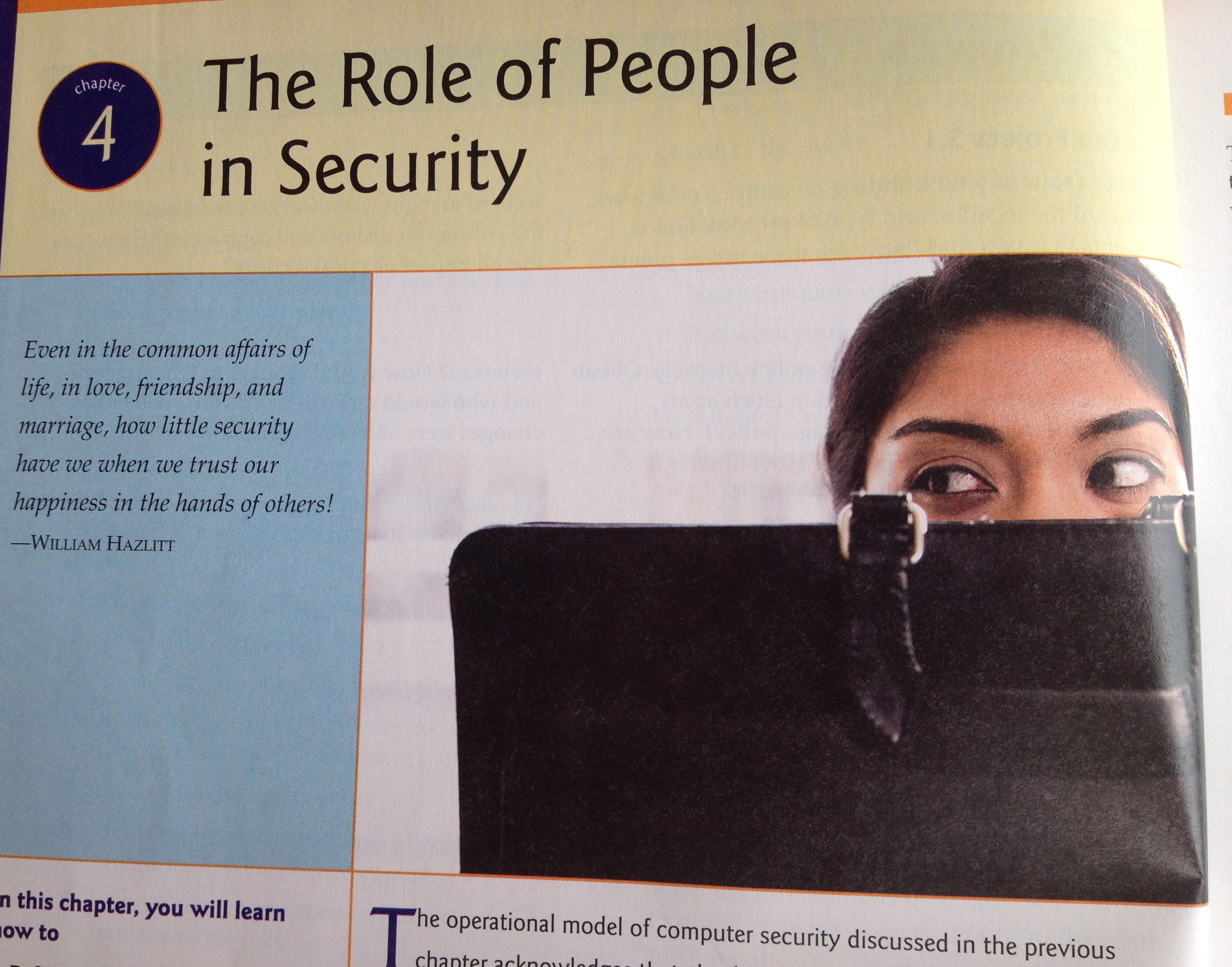 At the end of chapter one it says, “By now you should have the idea of security … locked down.” Just kidding, it doesn’t say that, it says something all knowledge-y and wisdom-imparting-y. Borrrrinnnnng.