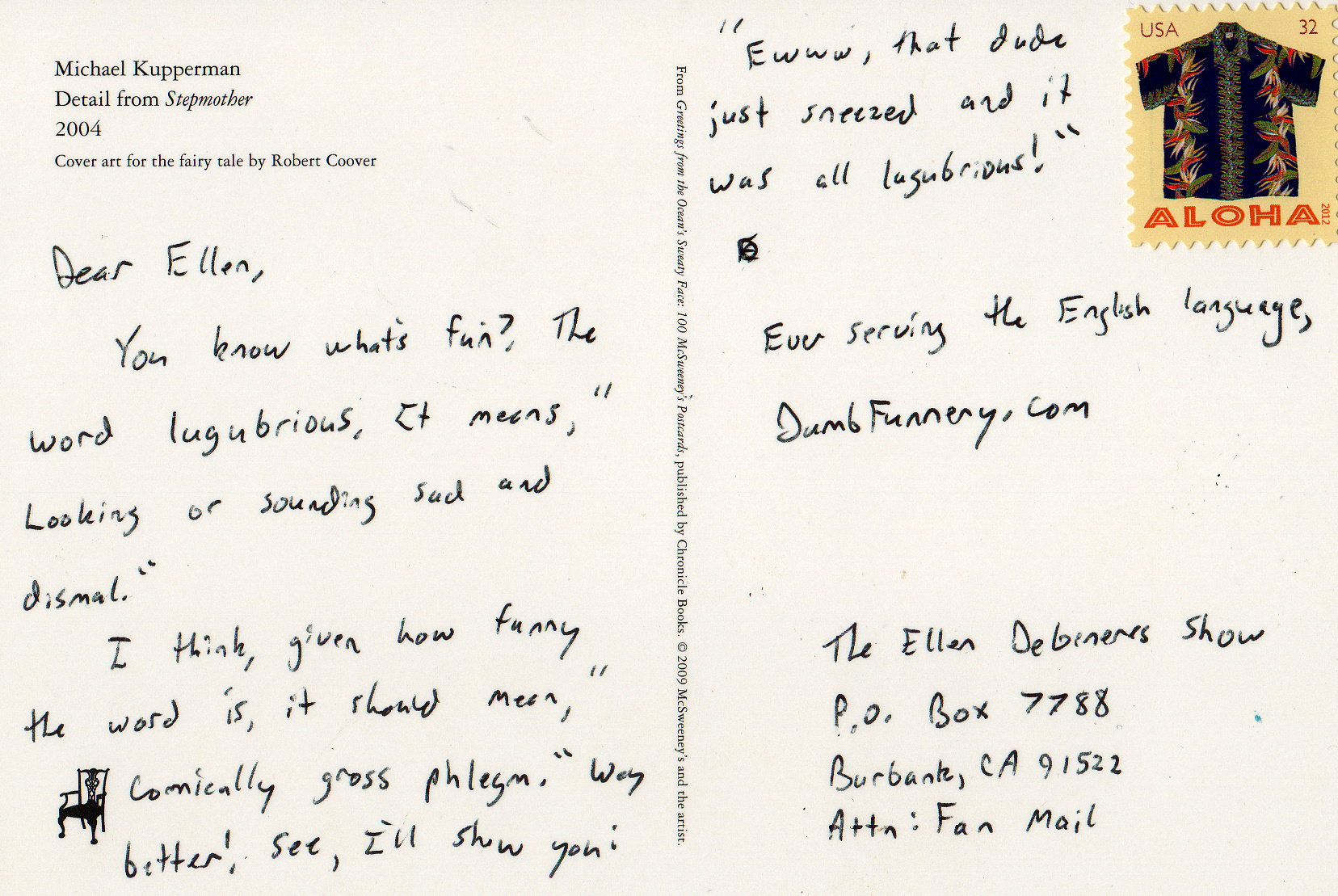 The text of the postcard is