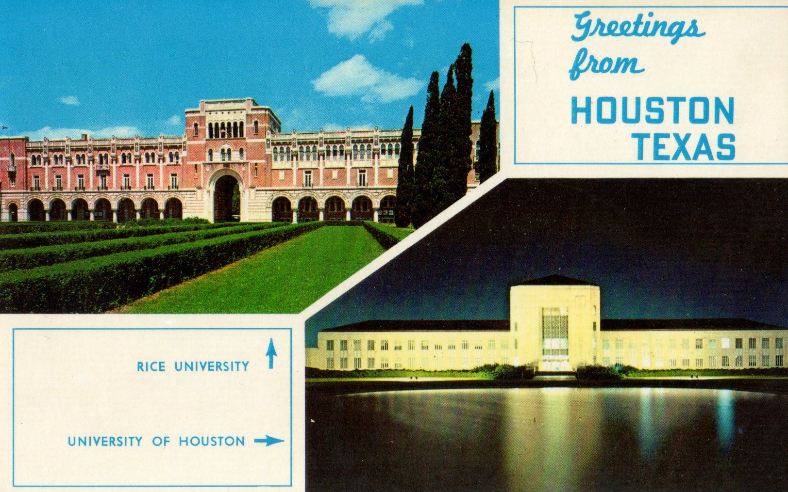 I have a sneaking suspicion that this postcard was made by a Rice grad. Or maybe some rival of UH’s.