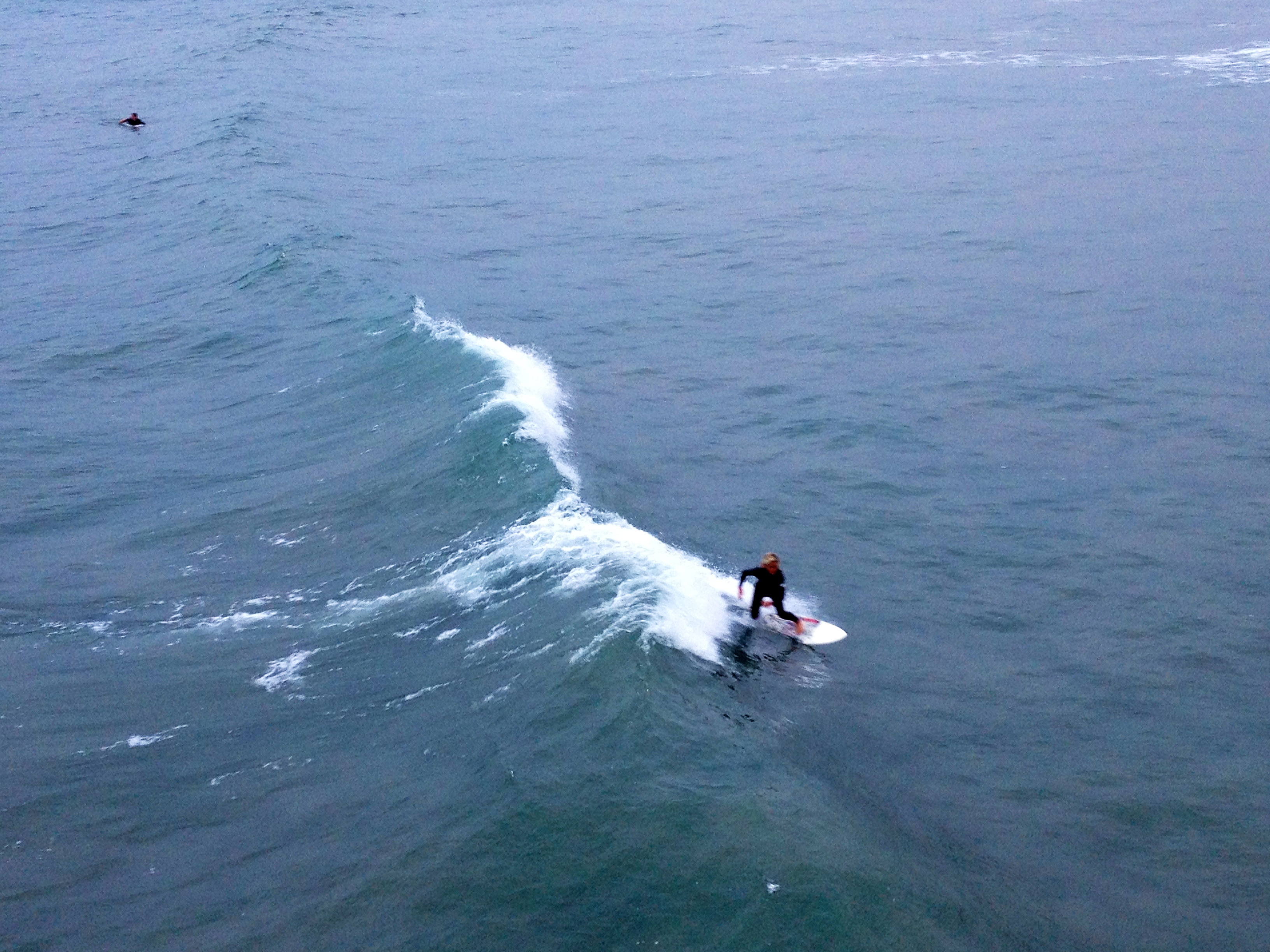This kid was the exception (he’s also the one walking into the water above). He would attack a wave, swim back up, and boom was back at the next decent wave he saw. Also I liked his stereotypical long blonde California surfer boy haircut.