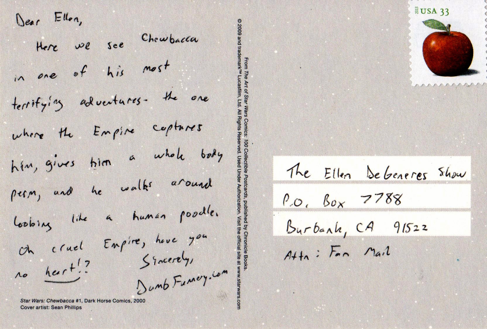 Here we see Chewbacca in one of his most terrifying adventures – the one where the Empire captures him, gives him a whole body perm, and he walks around looking like a human poodle. Oh cruel Empire, have you no heart!?