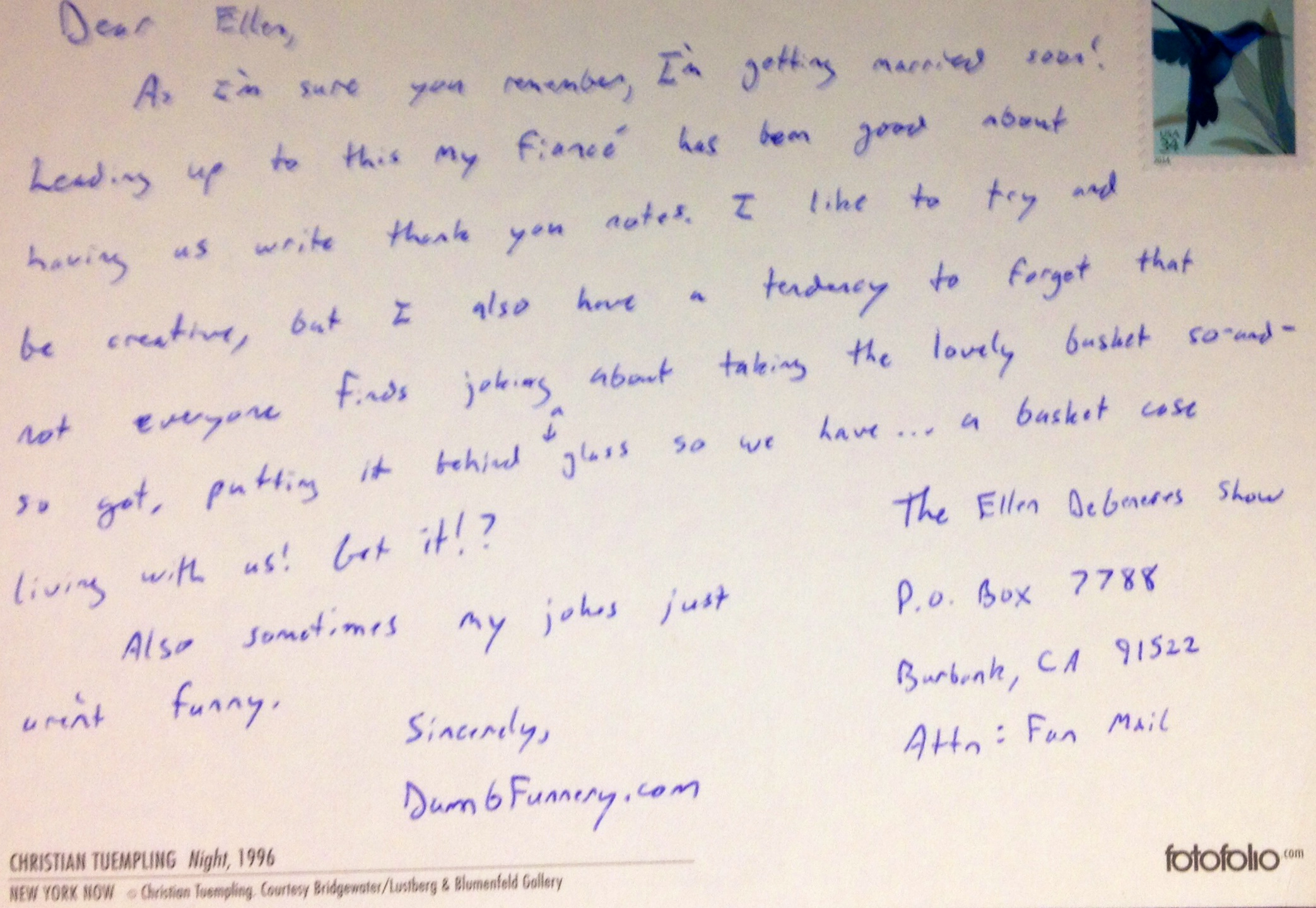 As I’m sure you remember, I’m getting married soon! Leading up to this my fiancé has been good about having us write thank you notes. I like to try and be creative, but I also have a tendency to forget that not everyone finds joking about taking the lovely basket so-and-so got, putting it behind a glass so we have … a basket case living with us! Get it!?