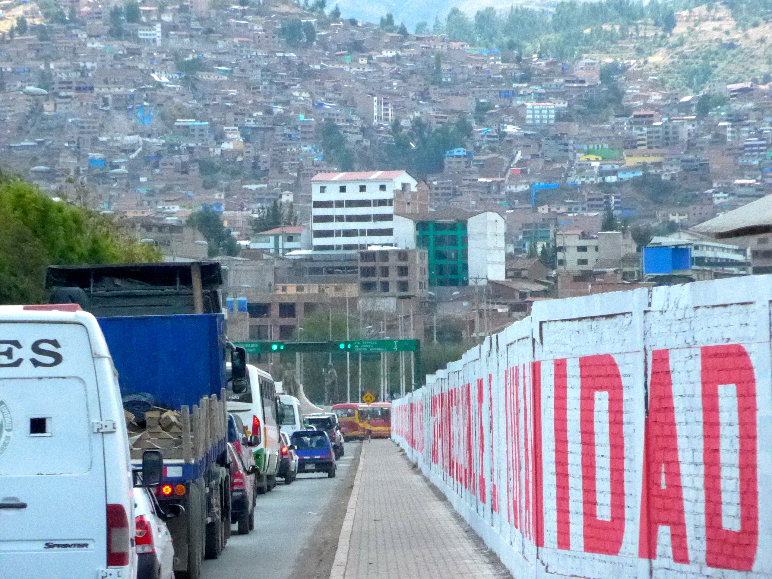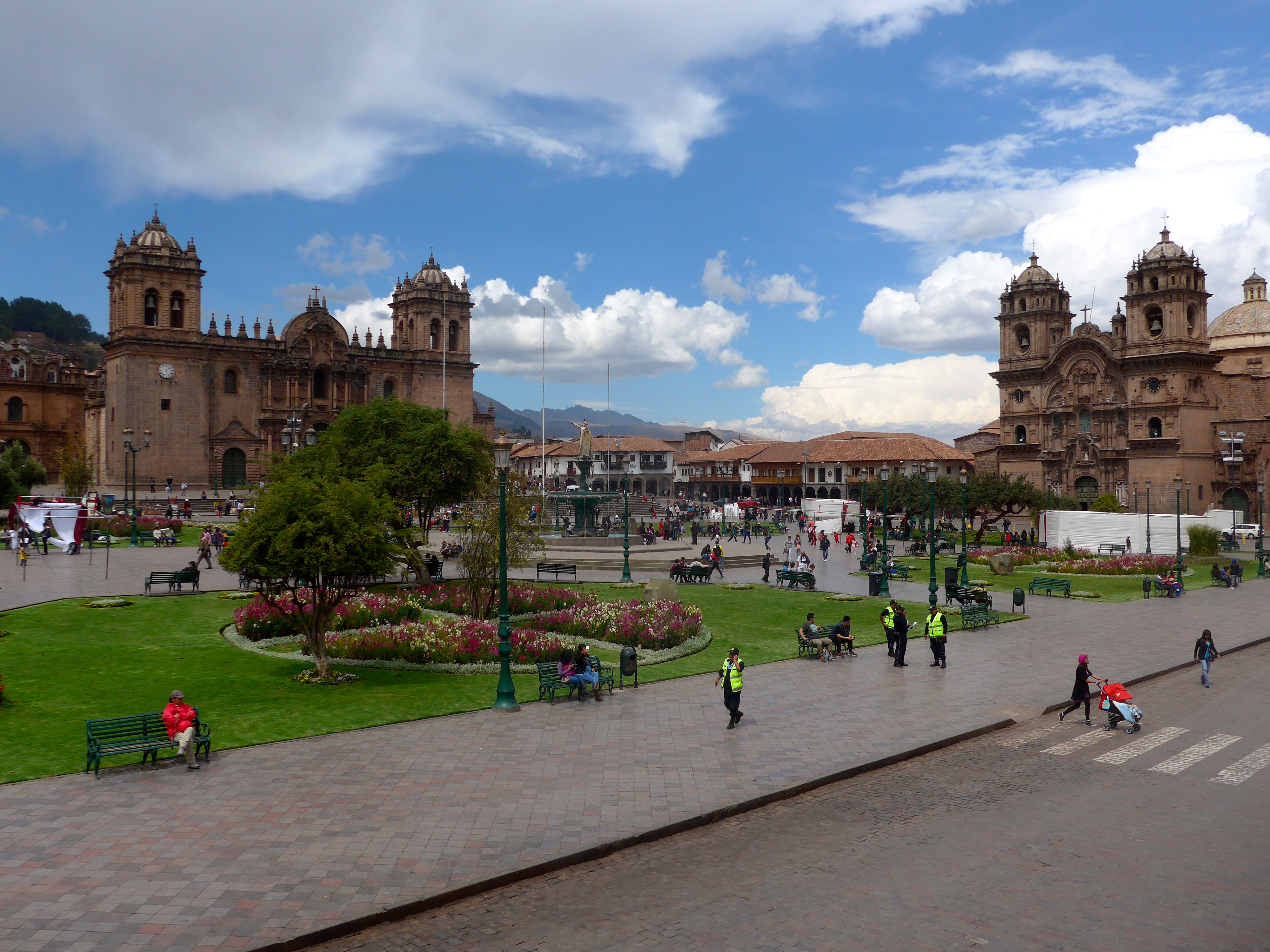 Main square in Cusco. (That’s a big pretty Cathedral there.)