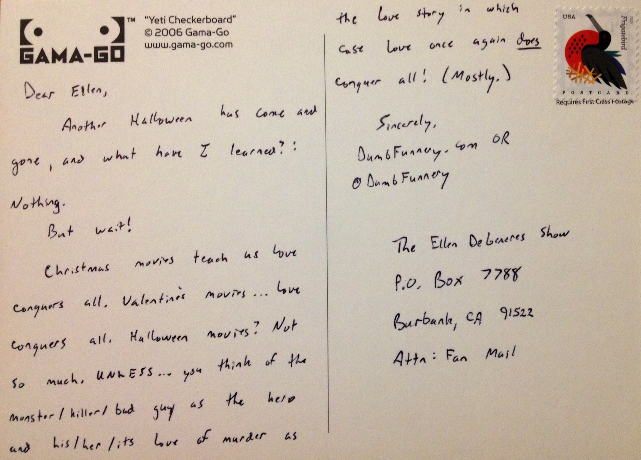 The text of the postcard is