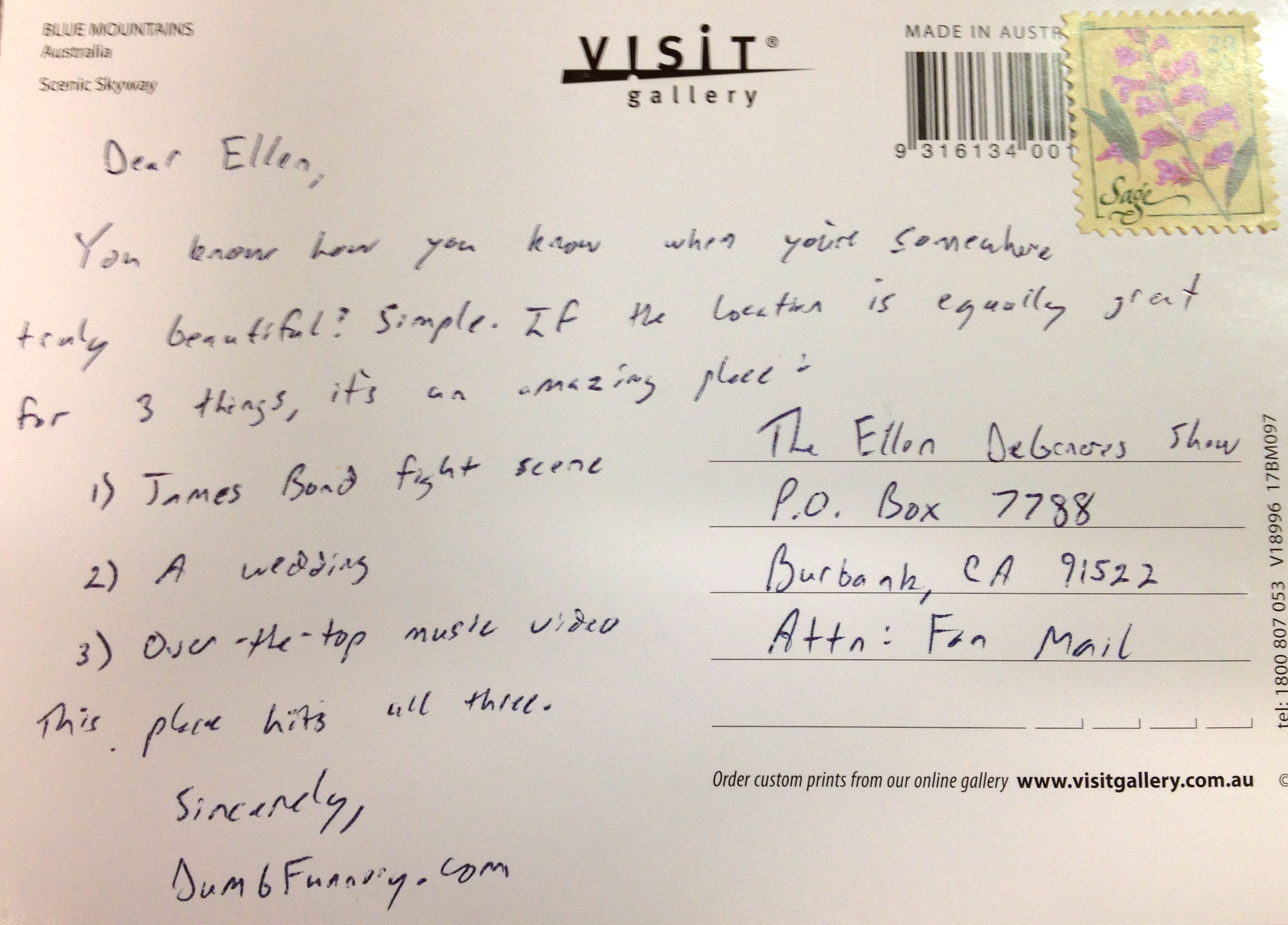The text of the postcard is