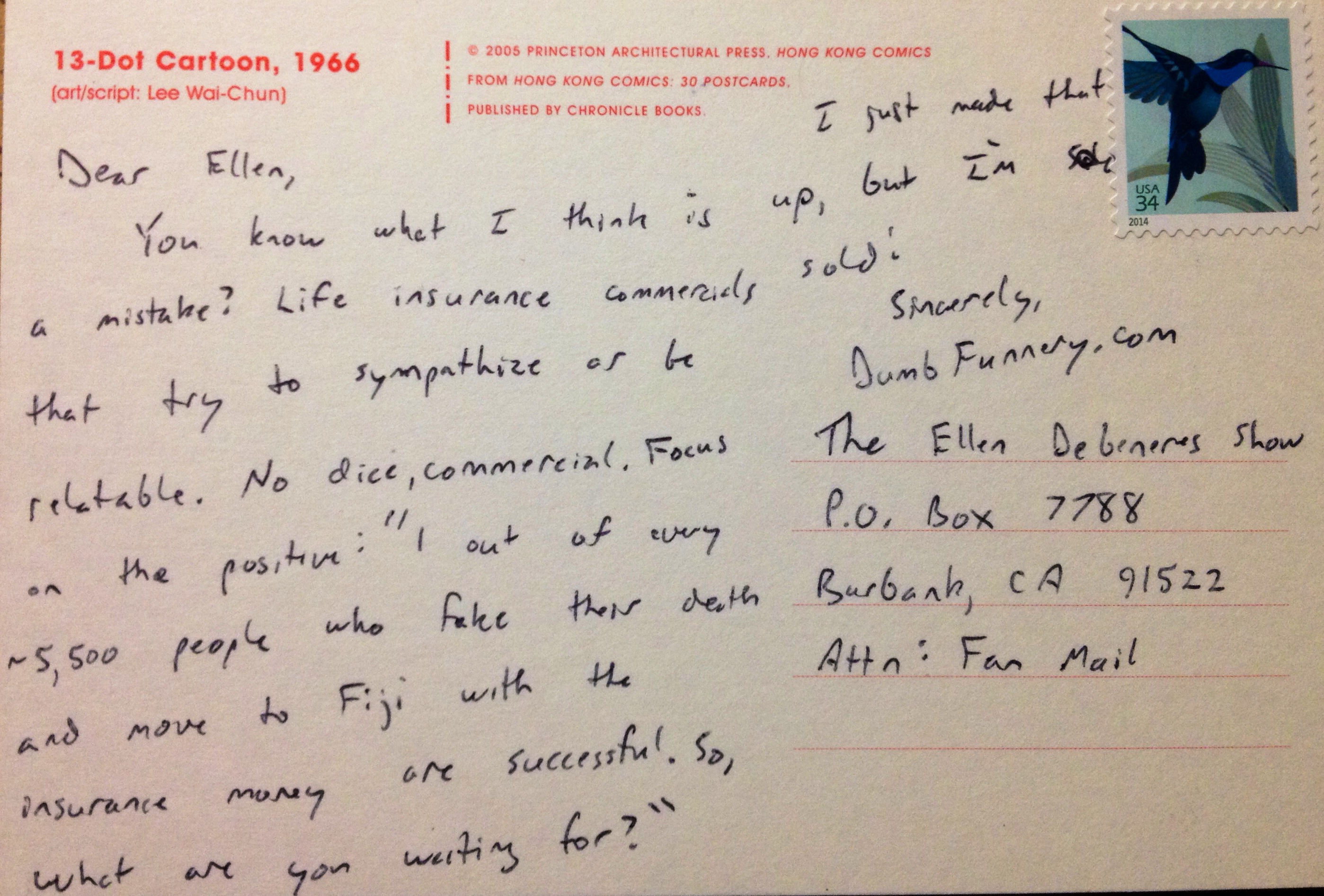 You know what I think is a mistake? Life insurance commercials that try to sympathize or be relatable. No dice, commercial. Focus on the positive: “1 out of every ~5,500 people who fake their death and move to Fiji with the insurance money are successful! So, what are you waiting for?”