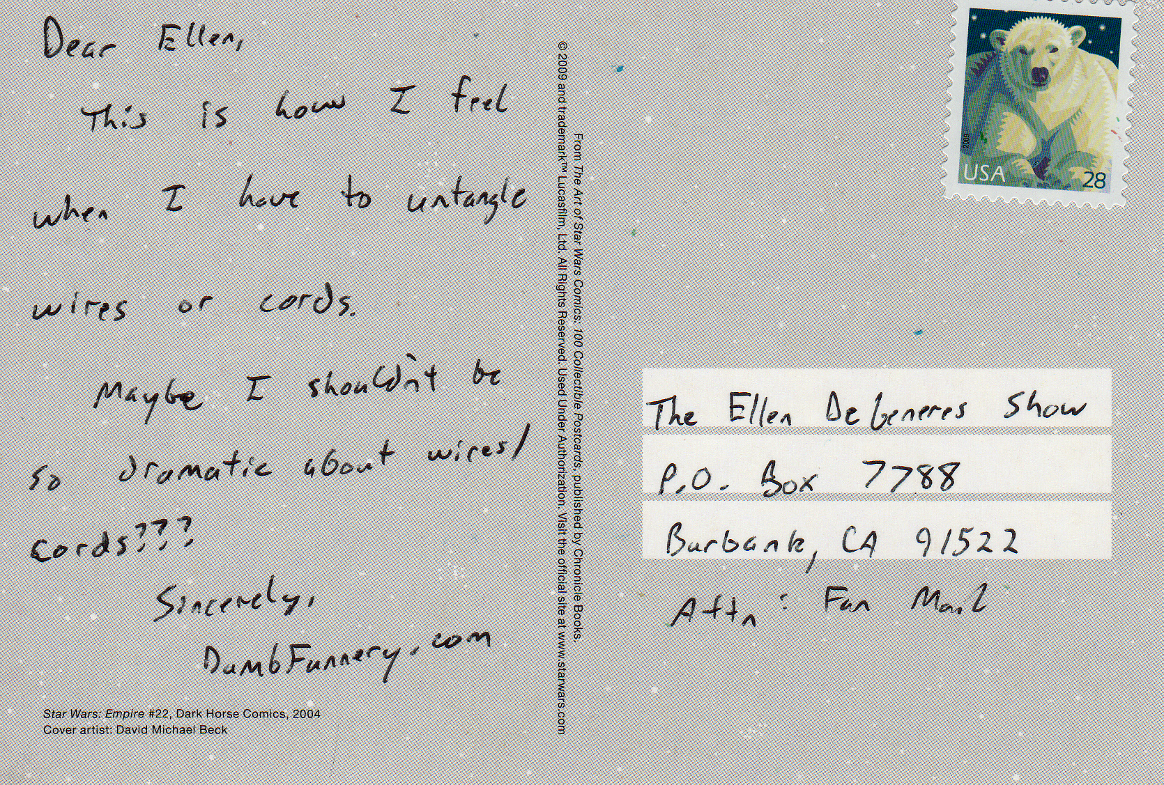 The text of the postcard is
